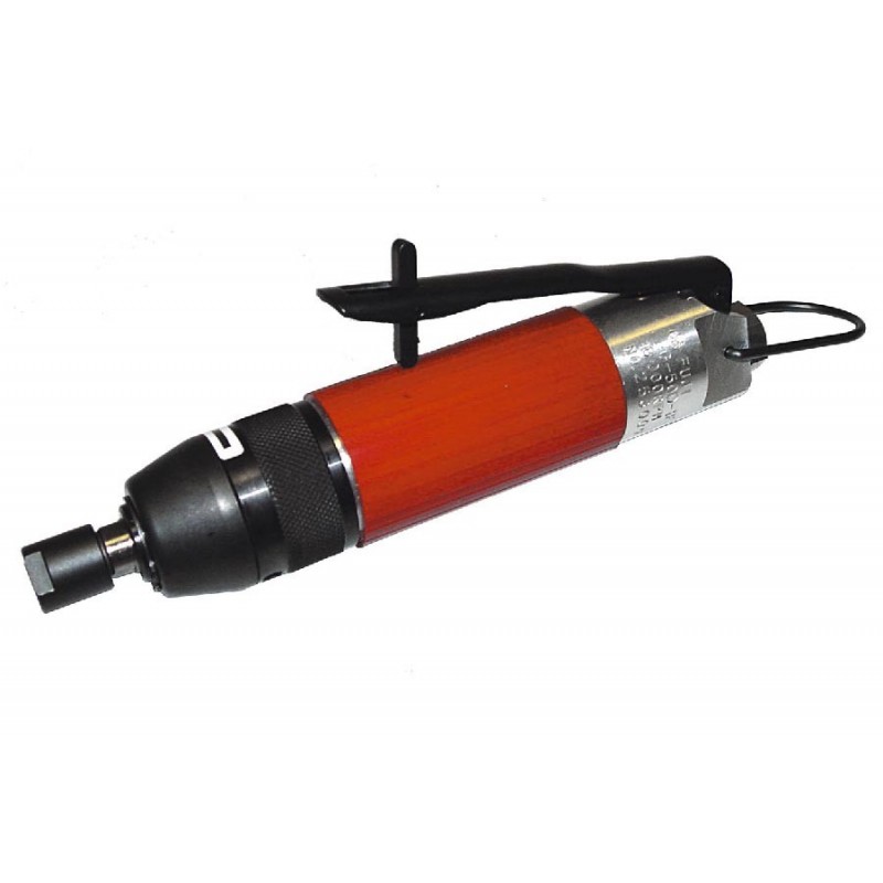 Amoladora neumática de pinza recta, con pinza de 6, capacidad 50, potencia 350w, velocidad 18.000R.P.M., longitud 210mm, peso 0,9kg, consumo 450litros/minuto, manguera Ø interior 10, rosca de entrada 1/4. Opcional casquillo Ø3, consultar pinza Ø8. Para uso continuo e intenso.