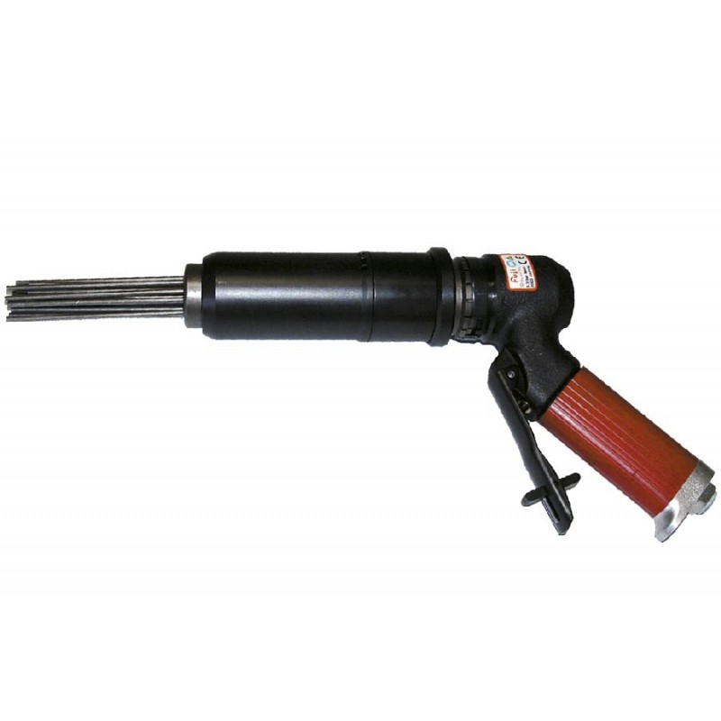 Martillo de agujas, con Ø agujas 3mm, Ø pistón 25, carrera 7, nº de golpes 8.000, longitud 309mm, peso 2,5kg., consumo 180 litros/minuto, Ø interior manguera 10, para uso continuo e intenso.