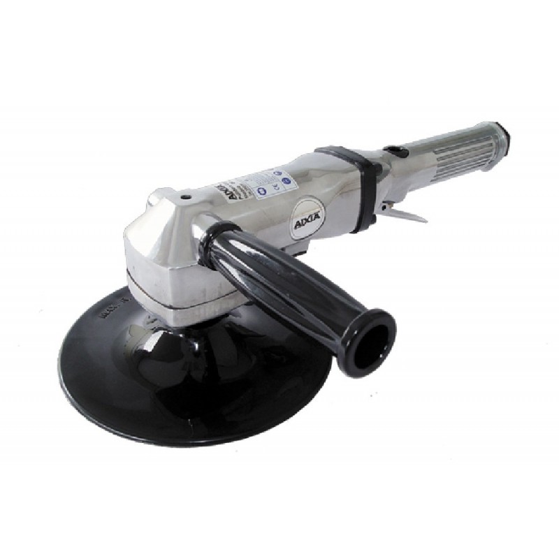 Pulidora neumática, Ø disco 125, rosca del eje 5/8, velocidad 2.200R.P.M., peso 1,8kg., consumo de aire 400 litros/minuto, manguera Ø interior 10, rosca de entrada 1/4. Para uso discontinuo.