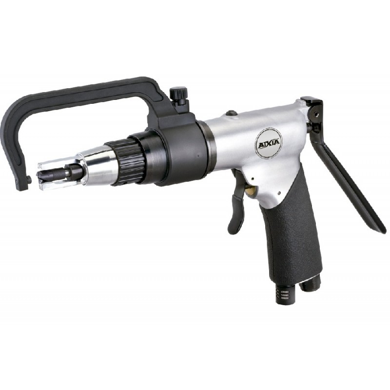 Quitapuntos de soldadura neumático, modelo 210, equipado con una broca de Ø8 mm, peso 2,3kg., velocidad 800R.P.M., consumo de aire 230 litros/minuto, Ø interior de manguera 8mm, rosca de entrada 1/4. Para uso continuo e intenso.