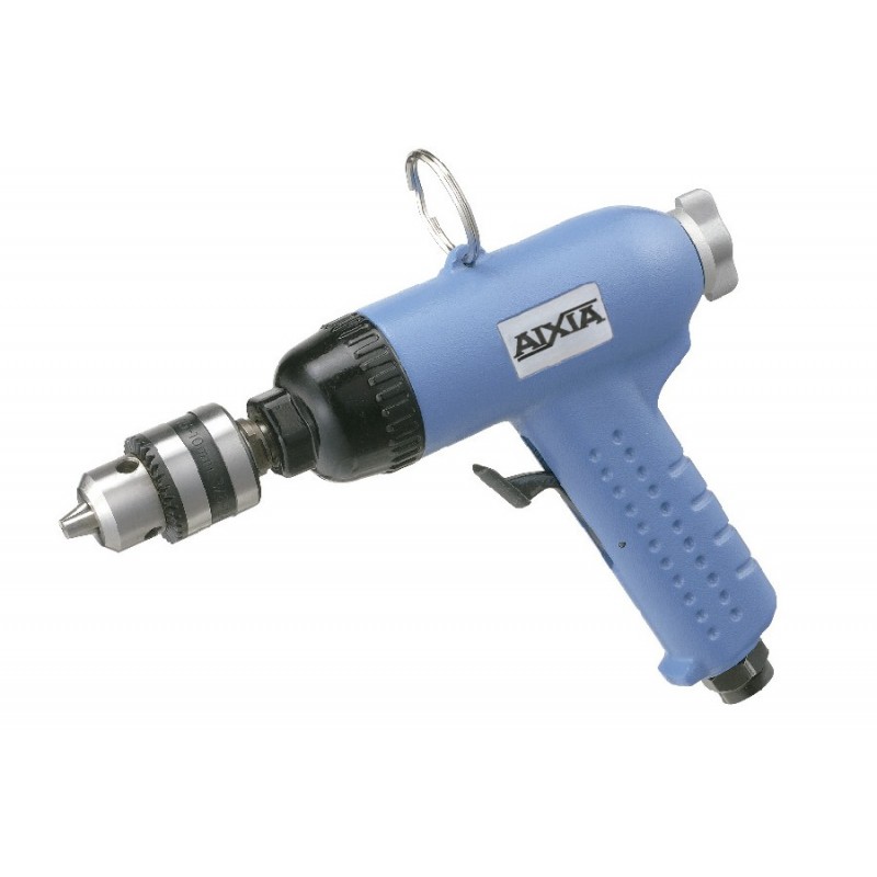 Taladro neumático percutor, carcasa de aluminio, capacidad Ø10, portabrocas llave, potencia 300w, velocidad 7.000R.P.M, longitud 225mm, peso 2,6kg, consumo 300 litros/minuto, manguera Ø8, rosca 1/4. Uso continuo.