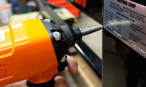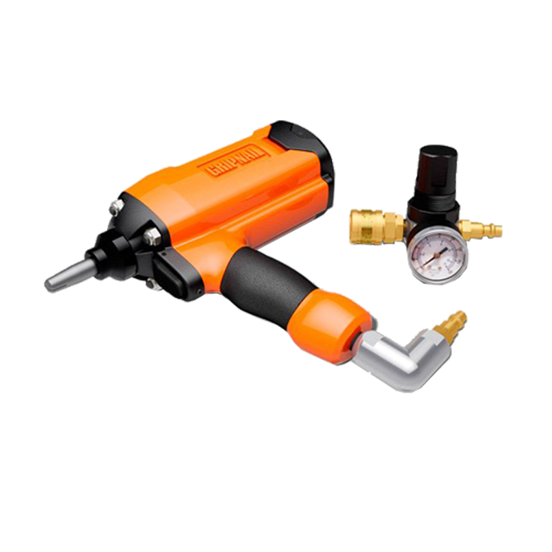 Una remachadora neumática, segura y de un solo impacto permite al operario colocar el remache de una forma rápida, segura y precisa.