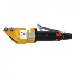 Tijera, cizalla neumática, longitud 225mm, ligera, peso 1,2kg., entrada de aire 1/4, consumo 450 litros/minuto. Es ergonómica, ligera y manejable, para corte de fleje de acero, aluminio y goma cuero.Para uso continuo e intenso.
