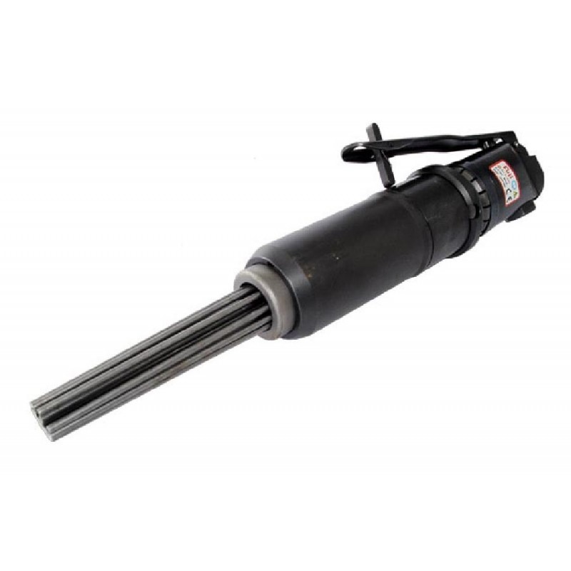 Martillo de agujas, con Ø agujas 3mm, Ø pistón 25, carrera 7, nº de golpes 8.000, longitud 347mm, peso 1,9kg., consumo 180 litros/minuto, Ø interior manguera 10, para uso continuo e intenso.
