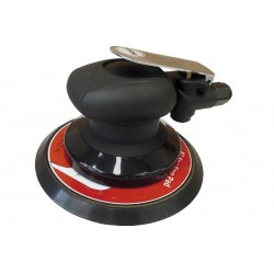 Lijadora rotorbital sin aspiración de palma, Ø disco 150, rosca del eje 5/16, órbita 5, velocidad 11.000R.P.M., peso 0,8kg., consumo de aire 450 litros/minuto, manguera Ø interior 10, rosca de entrada 1/4. Para uso continuo e intenso.