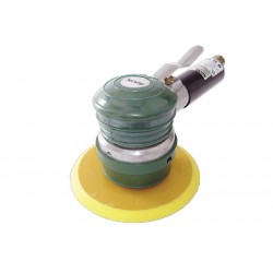 Lijadora rotorbital sin aspiración con mango, Ø disco 150, rosca del eje 5/16, órbita 10, velocidad 10.000R.P.M., peso 1,3kg., consumo de aire 400 litros/minuto, manguera Ø interior 10, rosca de entrada 1/4. Para uso continuo.