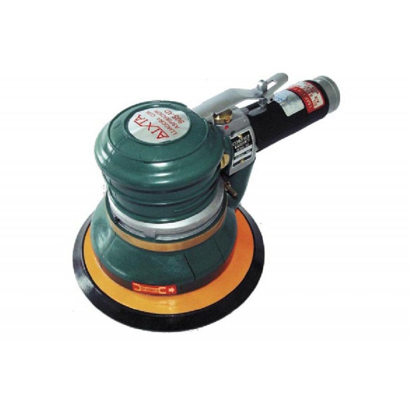 Lijadora rortorbital con aspiración con mango, Ø disco 150, rosca del eje 5/16, órbita 10, velocidad 10.000R.P.M., peso 1,6kg., consumo de aire 400 litros/minuto, manguera Ø interior 10, rosca de entrada 1/4. Para uso continuo e intenso