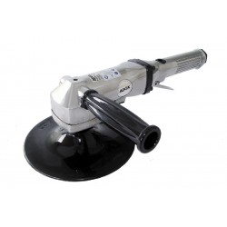 Pulidora neumática, Ø disco 125, rosca del eje 5/8, velocidad 2.200R.P.M., peso 1,8kg., consumo de aire 400 litros/minuto, manguera Ø interior 10, rosca de entrada 1/4. Para uso discontinuo.